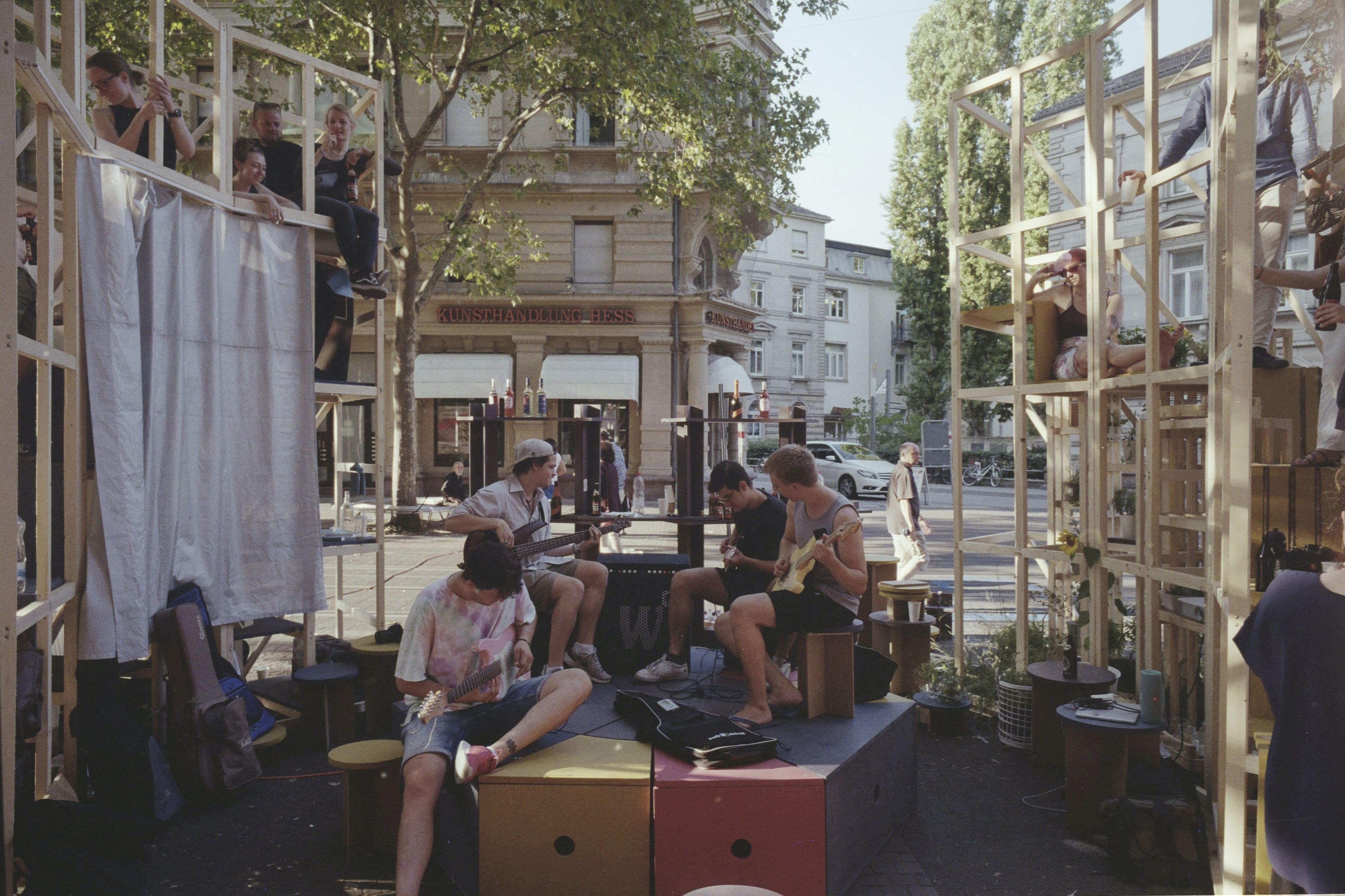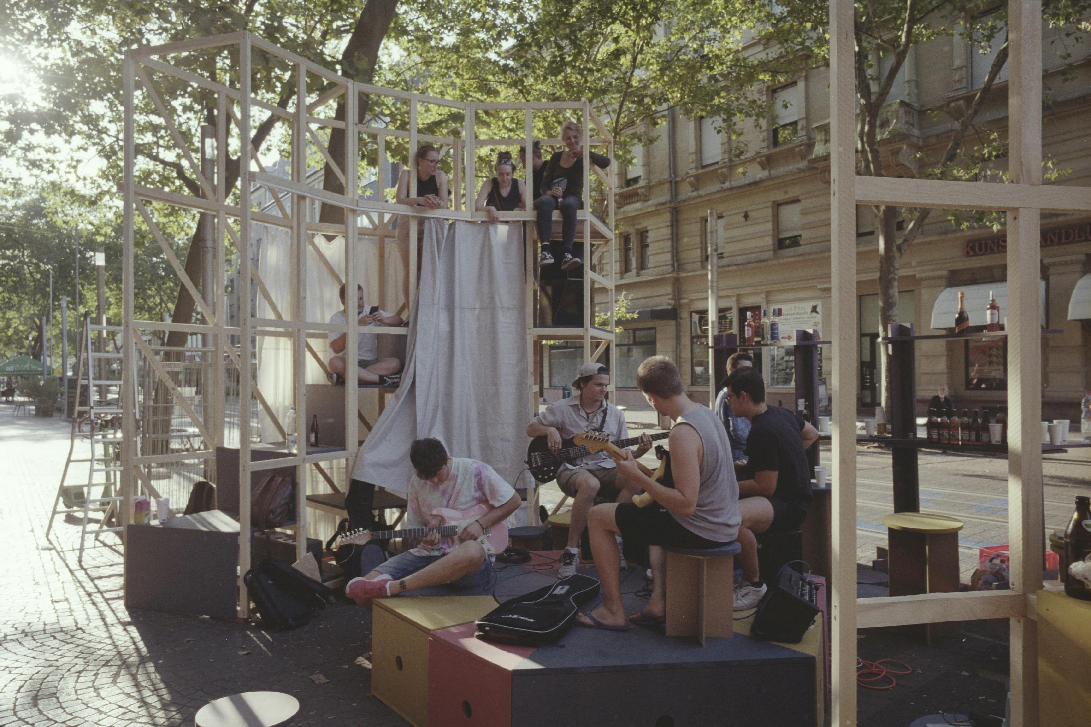 As a Visiting Professor at Karlsruhe Institute of Technology, Madeleine led the Masters Studio “Filling the Void: the death and life of the great European high street”. Our students took a series of abandoned spaces along Kaiserstraße and tested what these could become through a series of installations, artworks and performances. Through these interventions the studio sought to analyse, consult, question and understand how we can allow our high streets to thrive, so that they can be places for everyone. We questioned the role of the architect to propose an alternative future for the spaces and buildings, historical and modern, left abandoned in the heart of our towns and cities today. In keeping with the idea that public space is the stage on which the life of the city is played out, the studio was organised into 3 Acts, each building upon one another. Act III (The Finale and The Beginning) brought together members of the community over a day-long performance. The students designed and curated the day, which included a series installations (Ghost Town, Synthes!zer, Unframe, Unadvertised, Sensory Garden, Patchworkshop) that evolved throughout the day to encourage different activities, promoting a dialogue between the school, students, city and public.