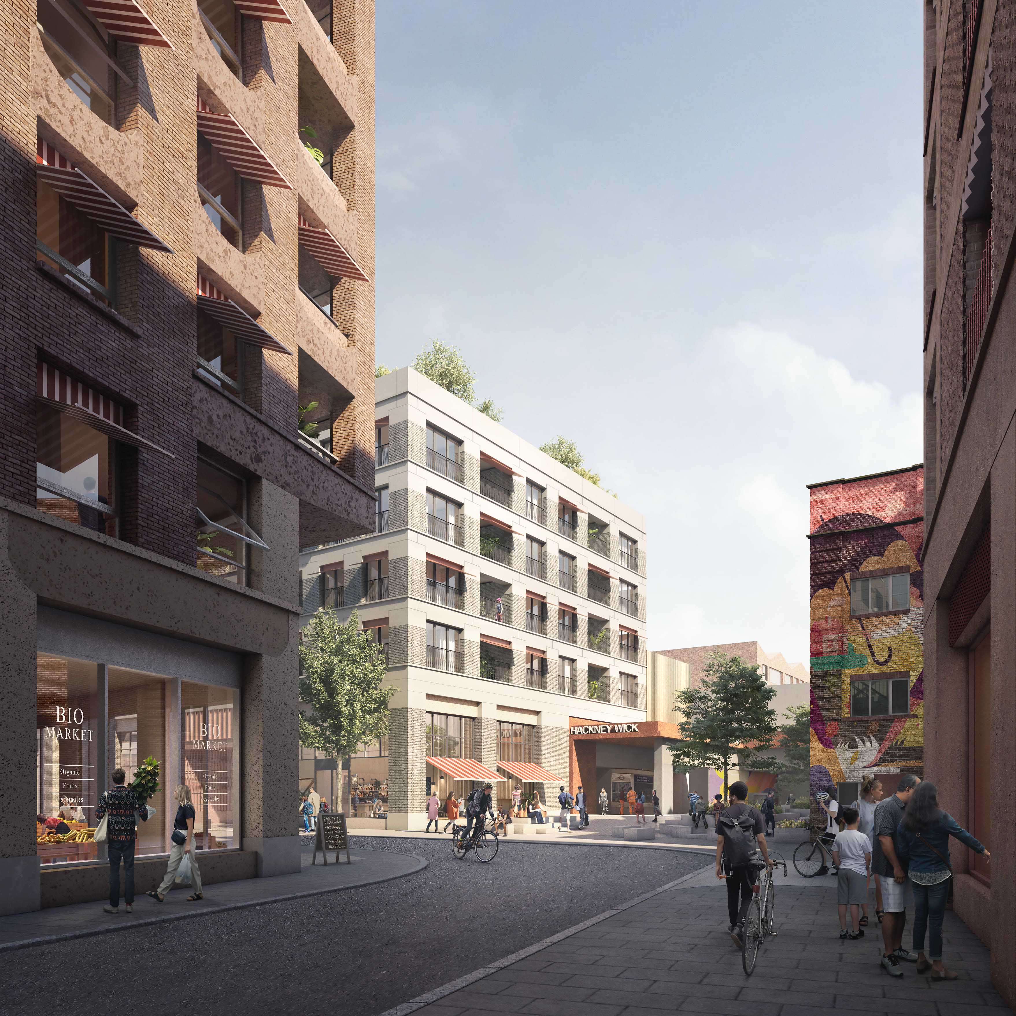 Hackney Wick is a project to provide nearly 200 new homes, affordable and commercial workspace and public realm, across three sites at the centre of Hackney Wick in London. We were invited to collaborate with Henley Halebrown, Haworth Tompkins, Witherford Watson Mann, ZCD, and LDA, on a design which responds to the rich history of craft, manufacturing and industry in the area. Our proposal creates a lively neighbourhood centre that reinforces Hackney Wick's distinctive sense of place.