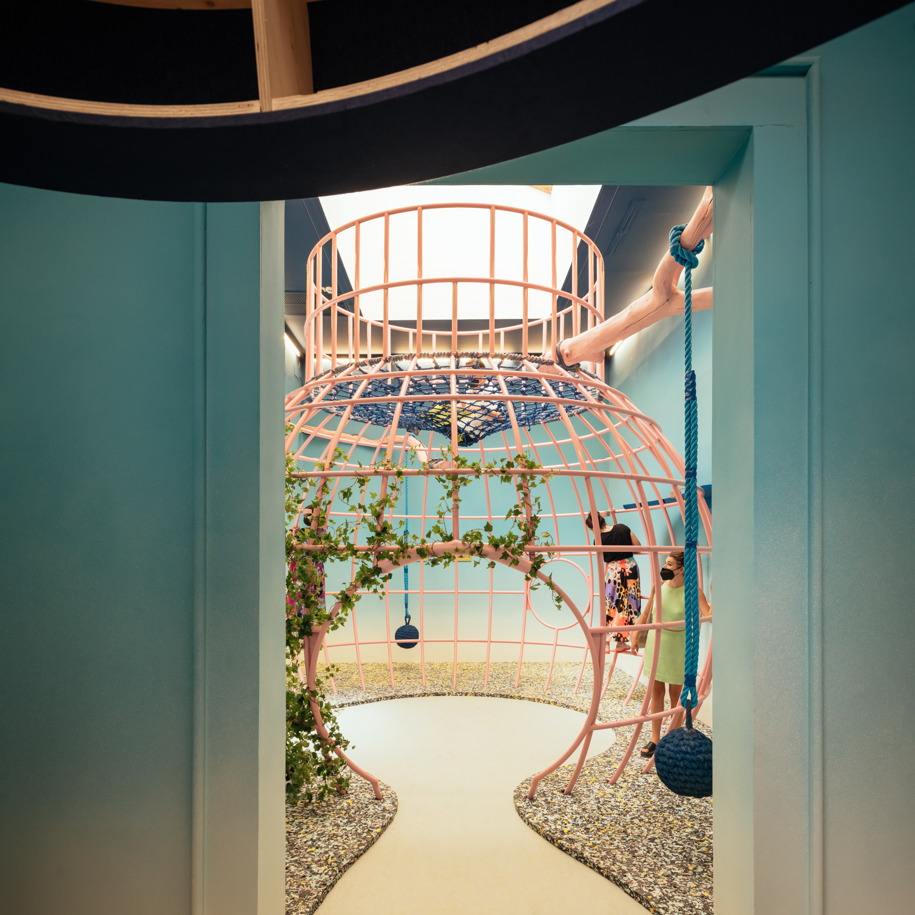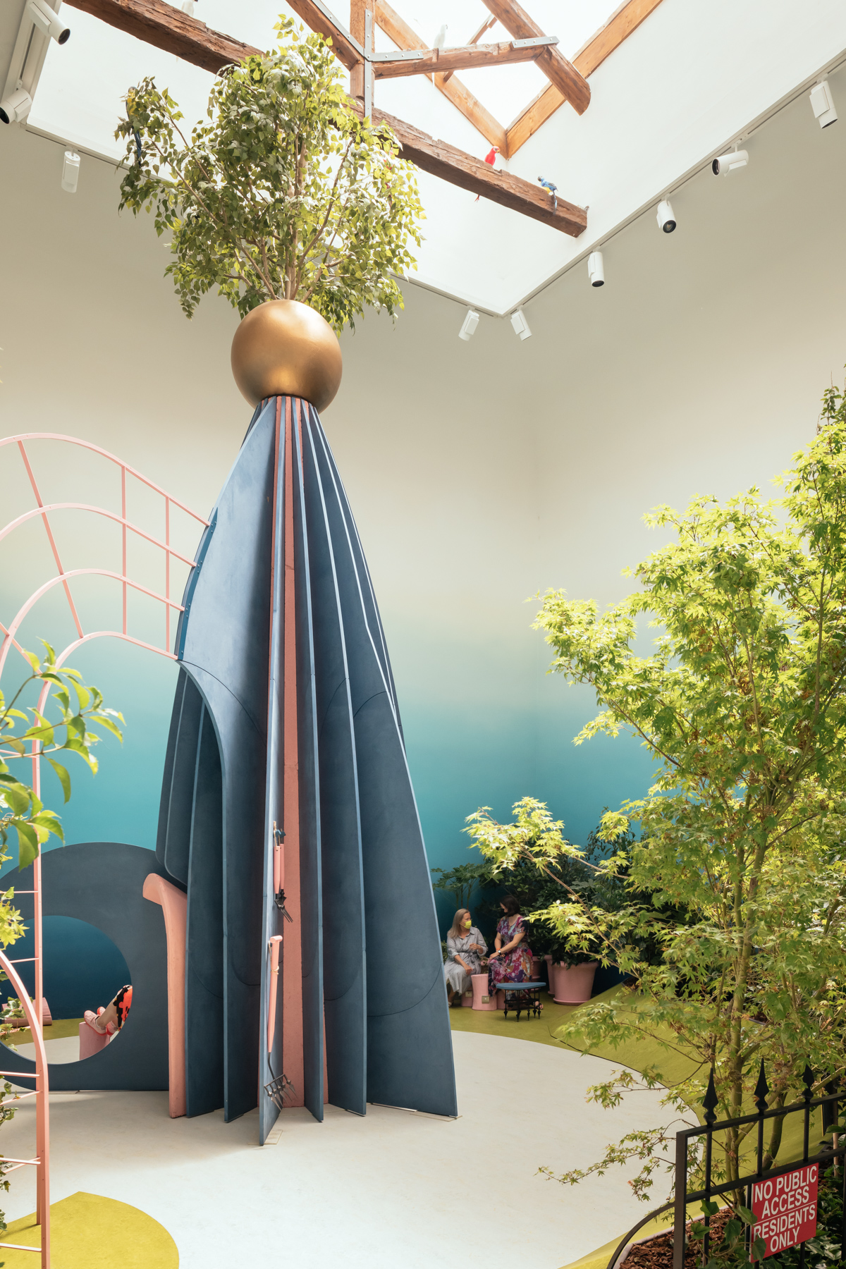 Inspired by Hieronymus Bosch's The Garden of Earthly Delights, The Garden of Privatised Delights explores privatised public space across the UK and reimagines how to make public space more inclusive, proposing strategies for more equitable ownership, access and use. The themes explored within the pavilion have taken on an almost prophetic urgency as a result of the global pandemic, including the demise of the high street; how facial recognition technology is used; access to green space; who owns public space; and the decline in dedicated social spaces for young people.