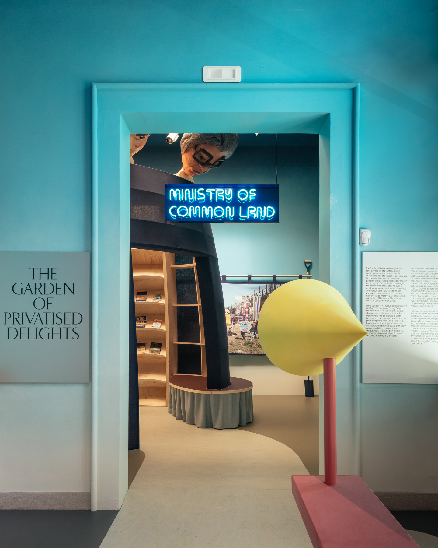 The six rooms of the British Pavilion are transformed into a series of immersive spaces, commissioned from leading researchers and practitioners, presenting both a critique of how they are currently used while providing strategies to increase people's agency over their public spaces. The exhibition is a testing ground for the future of public space, helping to make the British Pavilion a platform for discussion about contemporary art and architecture addressing one of the most pressing issues in the UK today.